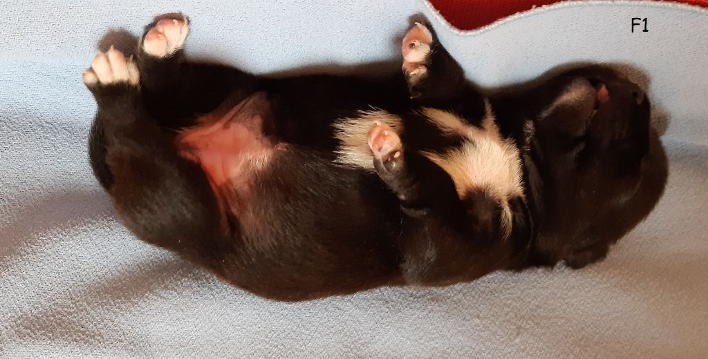 270g à la naissance F1 Black ( Black brindle) plastron blanc et orteil de 4 pattes blanc Très Vive depuis la naissance Petite femelle très mignonne avec un sacré caractère ?